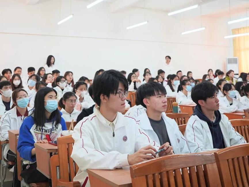 最后,卢教授以习近平总书记在二十大报告中谈到的“广大青年要坚定不移听党话、跟党走,怀抱梦想又脚踏实地,敢想敢为又善作善成,立志做有理想、敢担当、能吃苦、肯奋斗的新时代好青年,让青春在全面建设社会主义现代化国家的火热实践中绽放绚丽之花。”寄语同学们要积极上进,争做新时代的好青年。