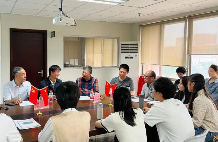 跨境电子商务系主任李伟教授向邓顺国教授详细介绍了跨境电子商务专业的师资力量、课程建设、产教融合、教师指导竞赛及教学科研等情况。