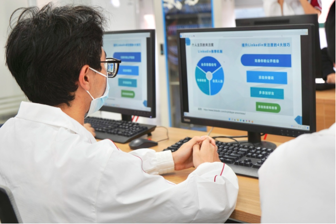 随后,桃花岛林炜峰老师对公司的业务内容及工作环境进行了详细介绍,并向跨境同学分享专业相关知识及资讯,包括跨境行业的发展趋势、国内及跨境电商发展现状,以及跨境电子商务专业的优势与人才培养方向,在整个分享过程中,现场气氛活跃,同学们踊跃发言提问,林老师耐心答疑解惑。