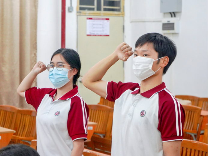 青马班所有学员共同宣誓:作为青马班的一员,将努力提高思想政治素质,坚定自身理想信念,促进自身全面发展;投身实践,乐于奉献;自觉遵守班级管理条例,严于律己。在学院育人过程中起到良好的榜样,成为德智体美劳全面发展的社会主义建设者和接班人!