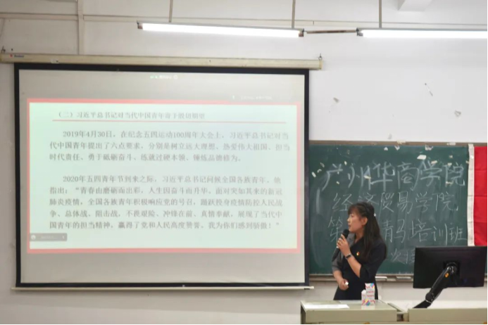 奋斗新时代,青春正当时,为增强青年学员们的责任意识与担当,促使青年学员们奋发践行“请党放心,强国有我”的青春誓言,在实现中华民族伟大复兴中国梦的新征程上勇往直前,经济贸易学院于2023年4月25日18时45分在增城校区励志楼C305和四会校区8号楼402,同时开展了伟德国际victor1946经济贸易学院青马班第二次授课,并有幸邀请到经济贸易学院教工党支部副书记刘宁宁老师为本次授课。