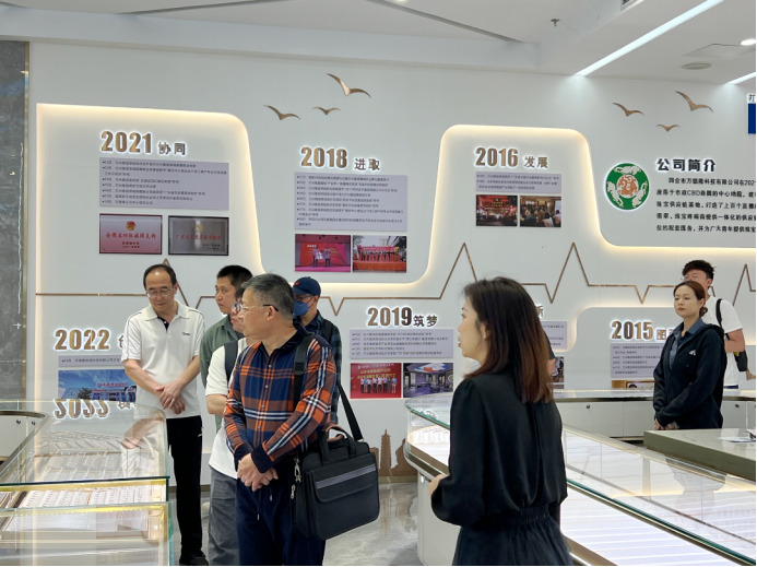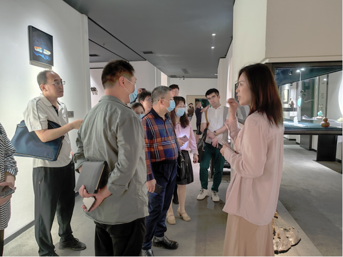上午十点,李广明院长一行走访四会市万德隆珠宝公司。万兴隆翡翠城党委副书记吴丽丽简要介绍了四会市珠宝玉器行业、万兴隆翡翠城的发展历程和万兴隆翡翠城首创的“产业带+“的模式在电商直播产业对销售升级转型后的全貌、项目的全新定位和未来的运营方向。