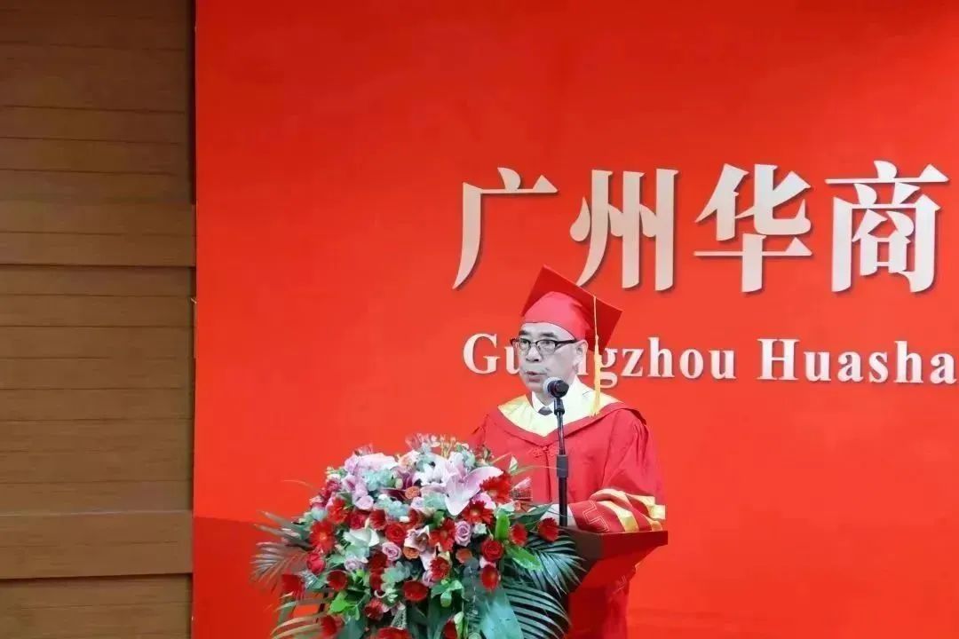 广东财经大学党委常委刘祖华副书记代表广东财经大学对华商学院毕业生表示热烈的祝贺和诚挚的祝福。他总结了华商学院建校十八年来所取得的各项成就,对我校教育事业的高质量发展表示肯定。同时,他深情寄语同学们:一、勇于担当,心怀家国,坚定理想信念,为中华民族的伟大复兴贡献力量;二、勤于学习,厚积薄发,不断吸纳知识,锤炼过硬本领,在开拓进取中创造非凡业绩;三、奋力拼搏,笃行不怠,始终保持以梦为马、刚健有为的前进姿态,让青春之花在祖国和人民最需要的地方扎根绽放。