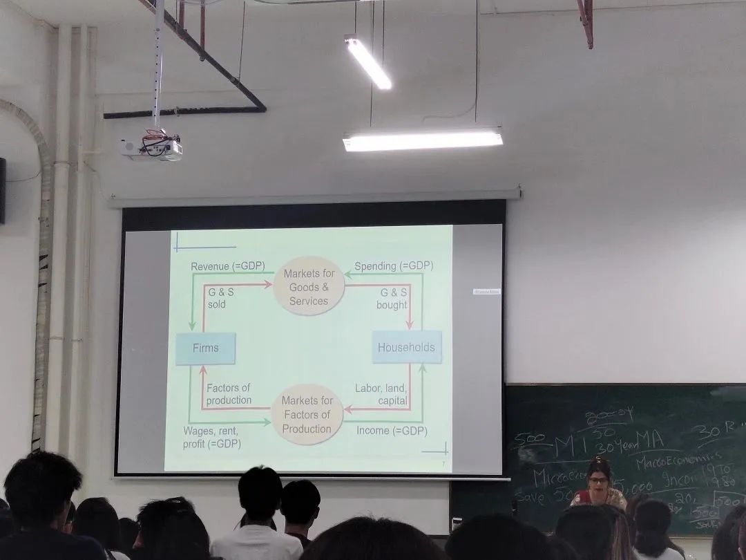 Aneela博士也采用了大量详细的统计数据示例,从消费、投资、政府购买和净出口四个部分分析了GDP的构成。在讲座中还运用循环流程图,基于GDP的多个概念,深刻分析了GDP对公司、家庭、政府、金融体系、外国部门的影响,让同学们对内容的理解更加简单。
