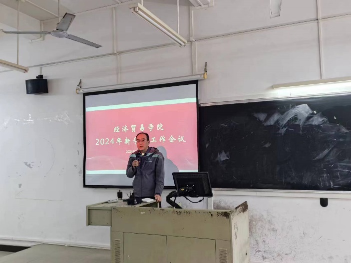 2024年3月5日,经济贸易学院在厚德楼C212隆重召开新学期工作会议,全体教职工齐聚一堂,共同谋划学院新学期的高质量发展。会议由院长李广明主持,副院长李伟、院长助理石立、赵慧琴,学生工作办公室主任宋元跃,学院办公室主任黄明亮以及全体办公室成员和专任教师参加了此次会议。