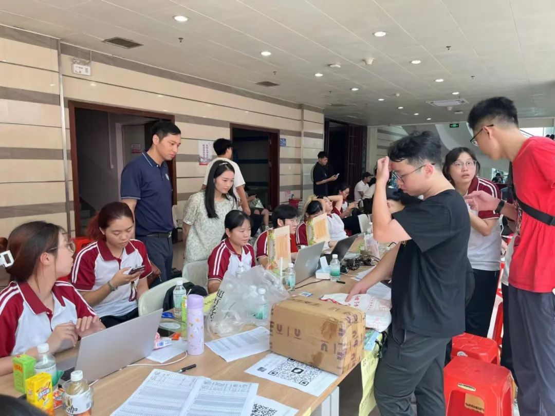 志愿者们有条不紊的进行着迎接新生的准备工作,将钥匙,书包等物资有序陈放,立志以最好的状态迎接新生。