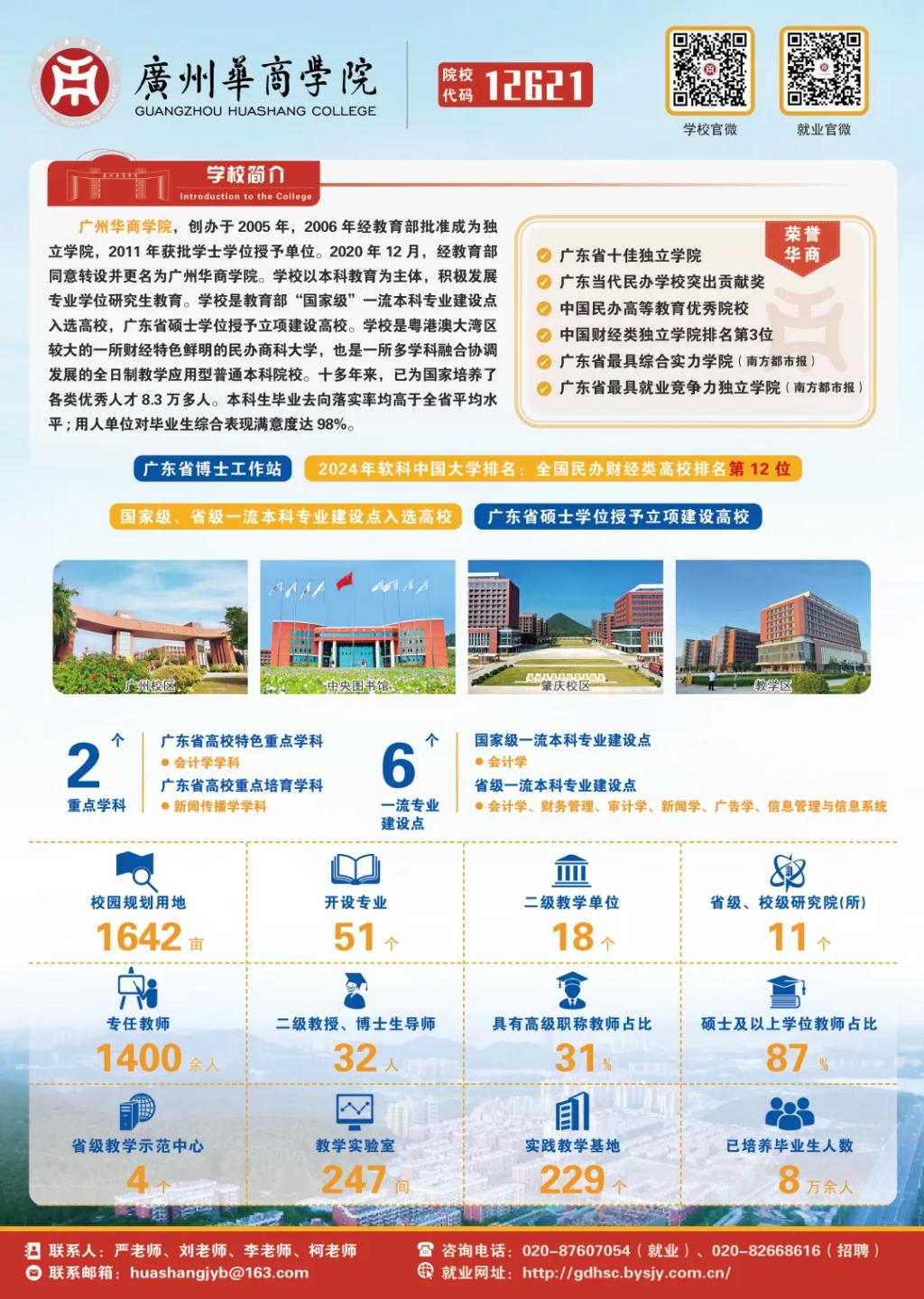 学校现有广州校区和肇庆校区,分别坐落在风景秀丽的“荔枝之乡”广州增城和素有“中国玉器之乡”美誉的肇庆四会;校园占地面积一千六百多亩,目前在校本科生3.2万人。
