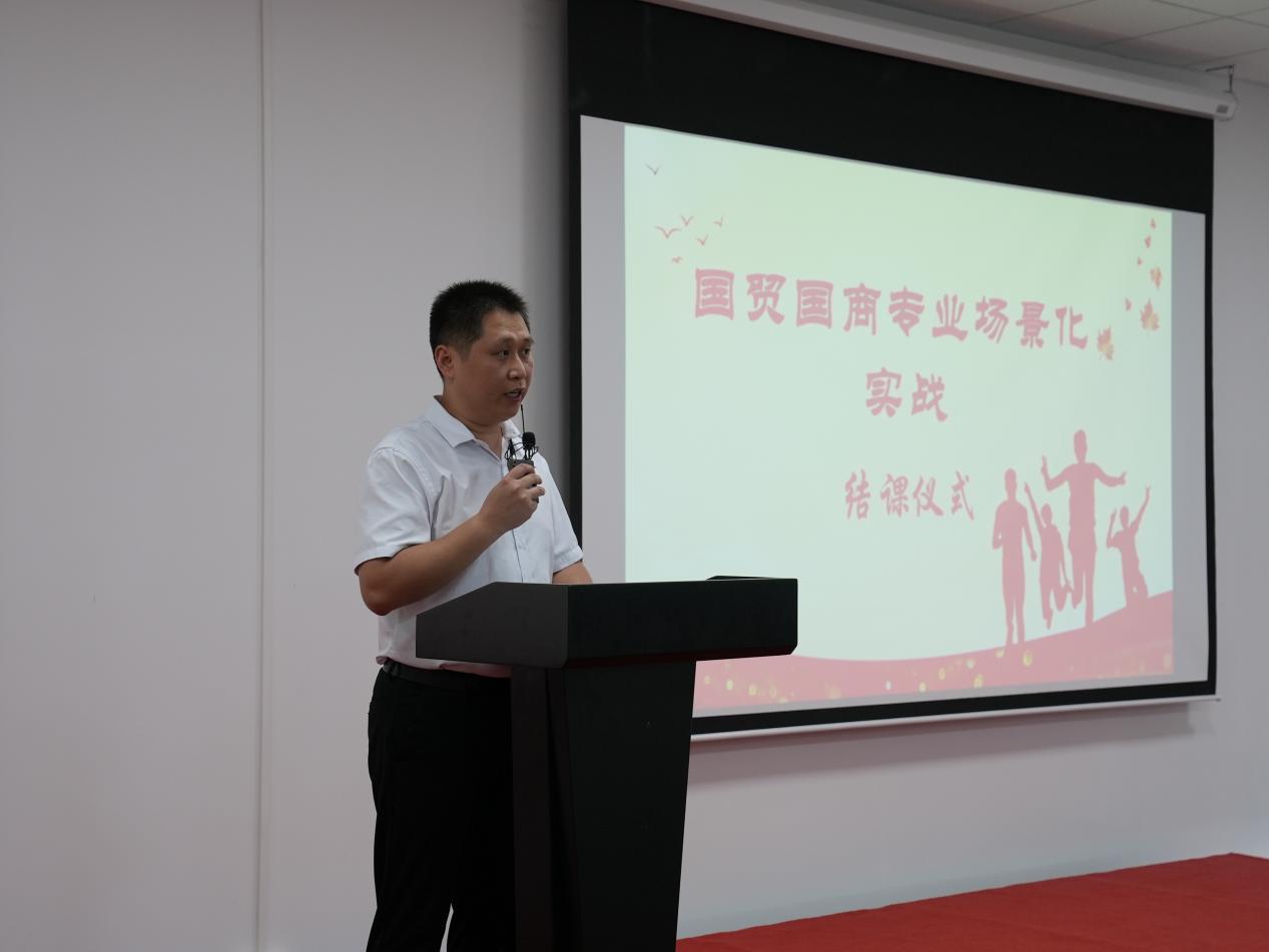 出席此次结课仪式的数字经贸学院领导嘉宾有:数字经贸学院副院长李伟教授、数字经贸学院院长助理石立副教授、数字经贸学院院长助理赵慧琴副教授、跨境电商系主任曹维老师、国际商学系副主任刘宁宁老师、跨境电商系副主任杨于昕老师、跨境电商系张嘉欣老师、数字经贸学院辅导员刘甜玲老师。