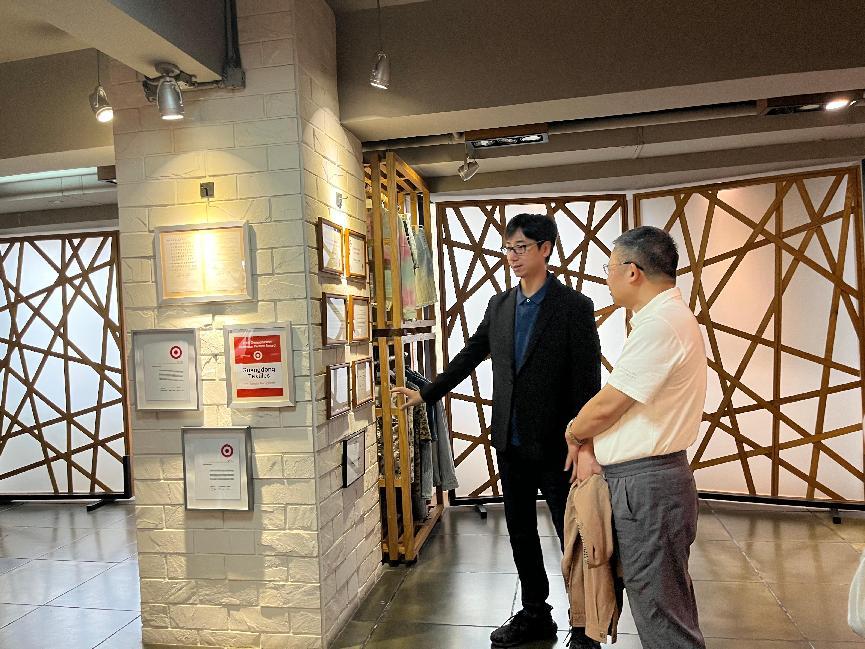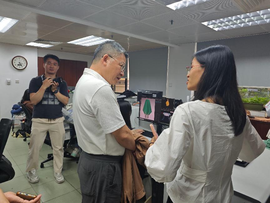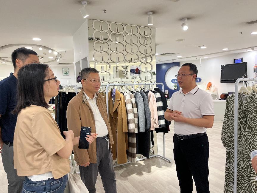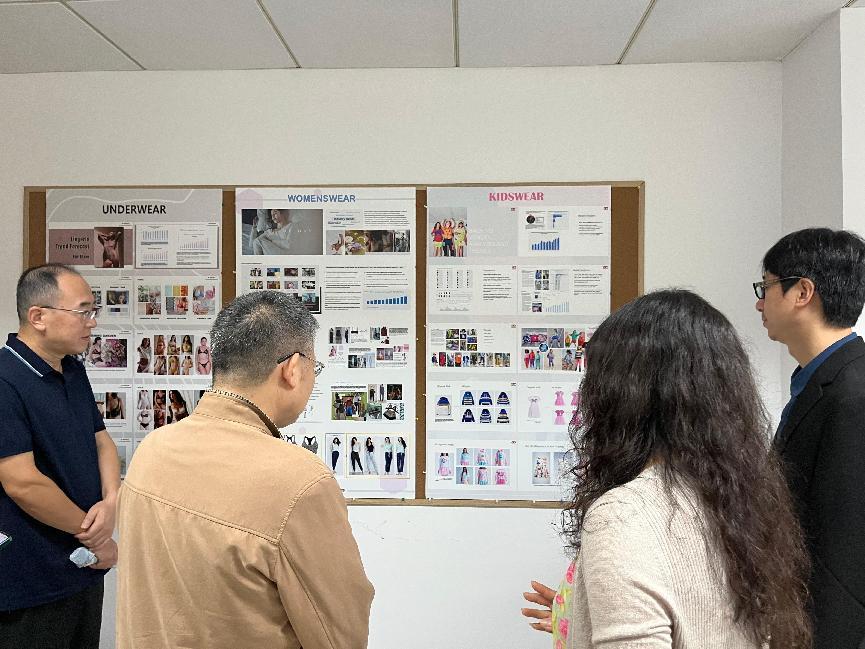 在广东省纺副总经理杜凌的陪同下,华商学院一行先后参观了庄姿尼南展厅、设计部门、牛仔展厅、毛衫展厅、工艺部及实验室。杜凌详细介绍了广东省纺的主营业务,包括童装、牛仔、家纺、西服、毛衫、内衣等领域,以及其从传统贸易到全平台电商运营的转型历程。同时,他还分享了公司的国际化战略布局,包括企业中国总部;美国、欧洲等主要国际市场,以及中南美、非洲、东南亚等生产基地的运营策略,以及,通过墨西哥和新加坡生产基地规避关税壁垒,以及肯尼亚在免税政策和基础设施完善方面的优势。