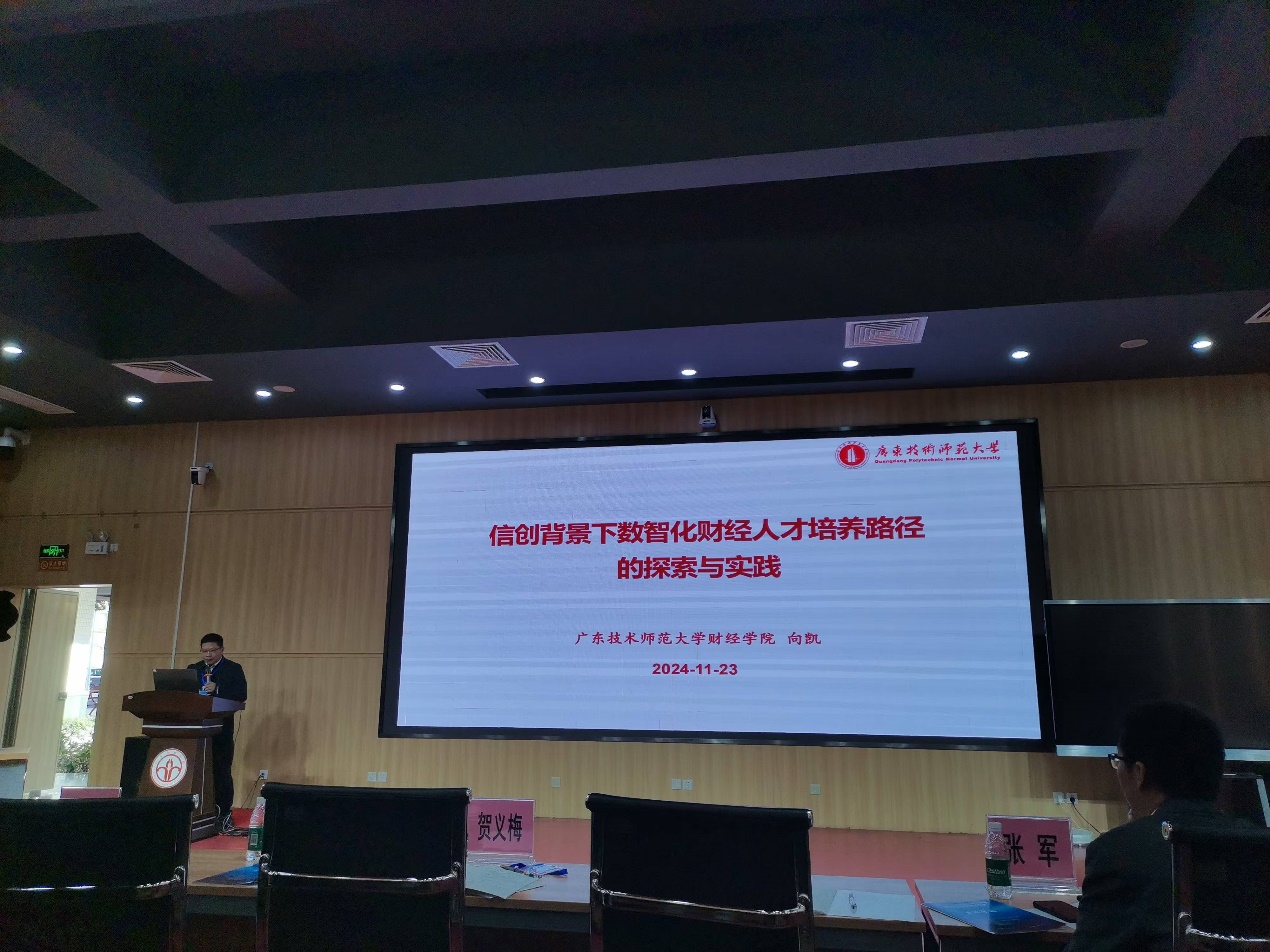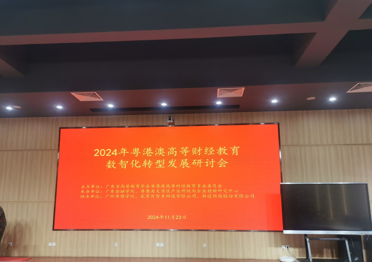 2024年11月23日上午,由广东省高等教育学会粤港澳高等财经教育专业委员会主办的“粤港澳高等财经教育数智化转型发展研讨会”在广东金融学院广州校区成功举行。研讨会云集了省教育厅相关处室领导、学会领导、成员单位教务处领导、教务处各科室负责人、各学院教学负责人及专任教师等。数字经贸学院李录堂教授、谢旻良教授、彭珍老师及赵若淇老师代表参加了此次研讨会,与教育专家和学者共同探讨了粤港澳高等财经教育数智化转型的发展趋势、策略与路径。