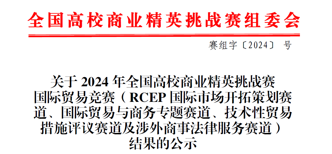 全国高校商业精英挑战赛国际贸易竞赛是由中国国际贸易促进委员会商业行业委员会牵头主办的国家级学科竞赛活动。根据中国高等教育学会发布的《全国普通高校大学生竞赛排行榜》,全国高校商业精英挑战赛国际贸易赛项连续多年被纳入全国普通高校大学生竞赛排行榜目录,也是我国国际经贸教育领域校企合作的规模最大的综合实践平台和学科竞赛活动。