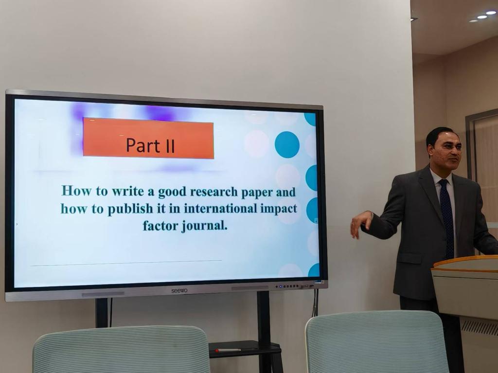 在讲座的第二部分,Arshad Muhammad博士热情分享了撰写高质量论文的技巧以及在具有影响力的国际期刊上成功发表论文的策略。在该分享环中,Arshad Muhammad博士着重探讨了论文选题的影响因素、论文撰写过程中应保持持续思考和高度专注、国际期刊选择的注意事项,以及在回复评审意见时应针对每位审稿人提出的每一点进行回应,要突出采纳的意见和未采纳的意见(并说明原因)等相关细节内容。