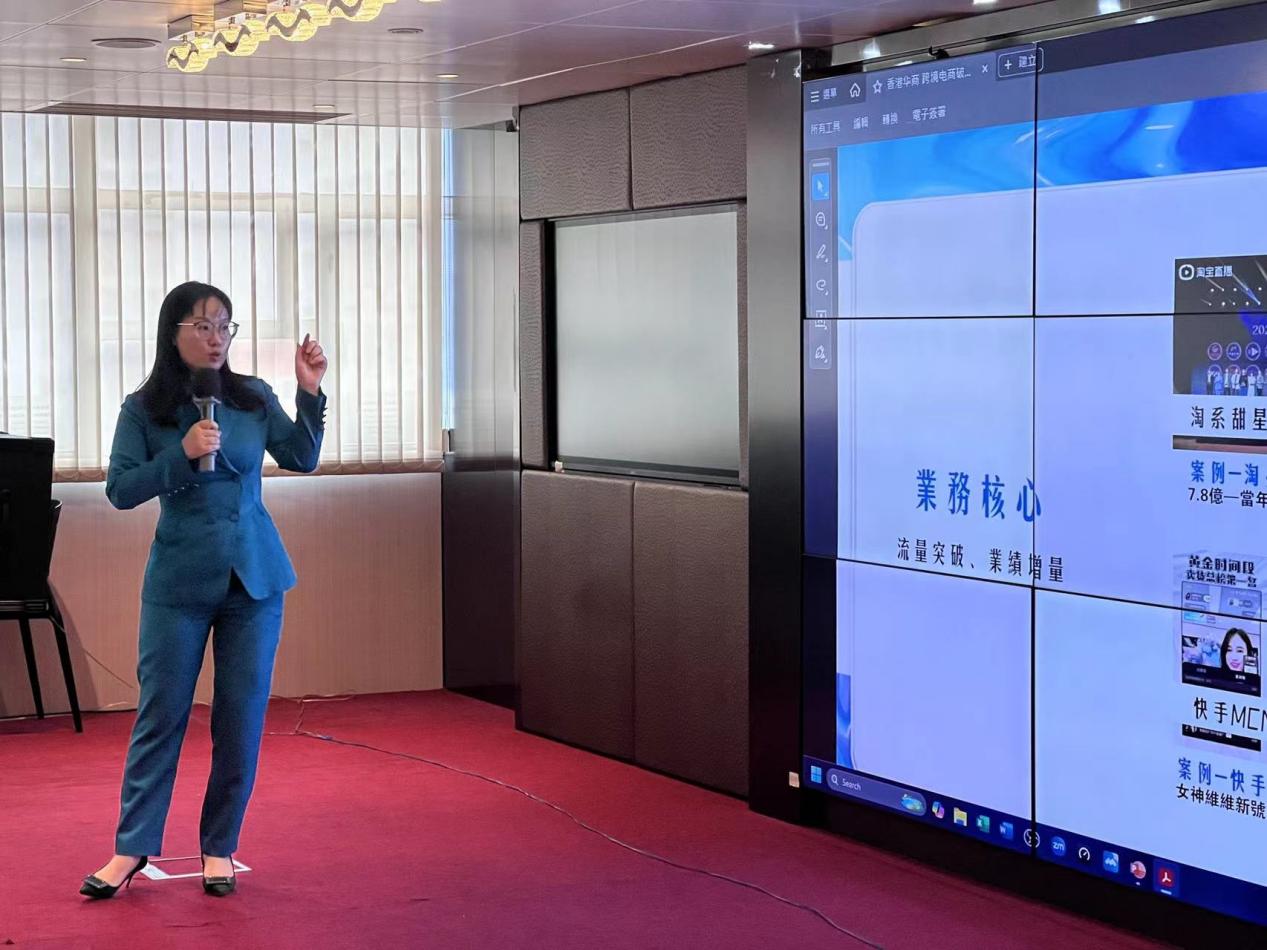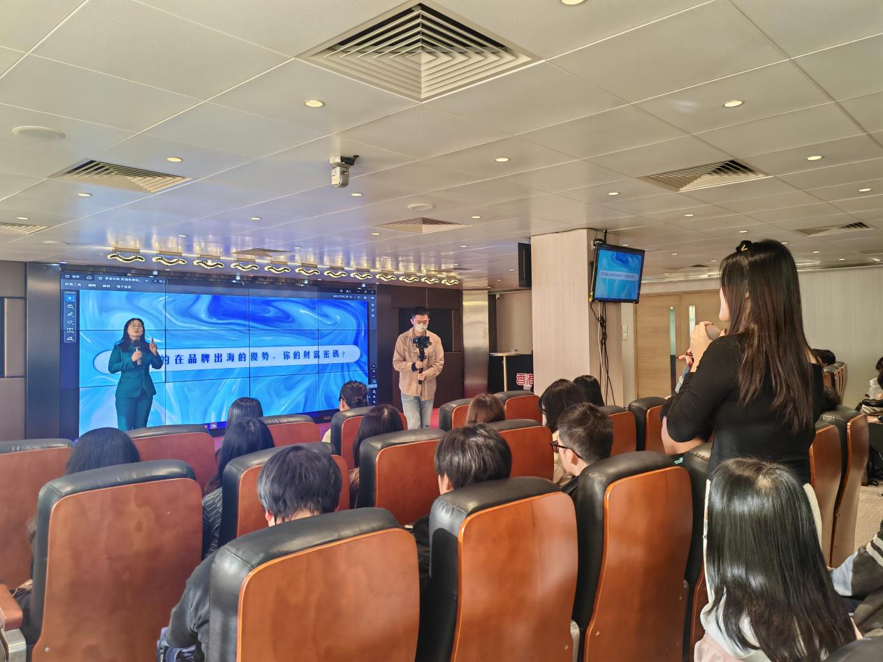 下午,学生们集中步行到卓悦集团。活动由杨志豪先生精彩开场,他以生动有趣的方式介绍了卓悦集团及其独特的魅力,并详细阐述了接下来的行程安排。紧接着,广州思帆TikTok项目的资深合伙人肖冰如老师登台,凭借其丰富的直播带货实战经验,为学生们深入剖析了跨境电商的全链布局策略。肖老师既分享了宝贵的行业见解,还带来了跨境电商领域的最新前沿趋势,让整个讲解内容更加充实且引人入胜。凭借其从淘系、抖音到快手等多平台的成功案例,肖老师不仅传授了宝贵的知识,还积极与学生互动,回答了学生们关于市场定位、选品策略、职业发展等方面的疑问,现场气氛热烈,学生们纷纷表示受益匪浅,对跨境电商行业有了更为全面和深入的理解。