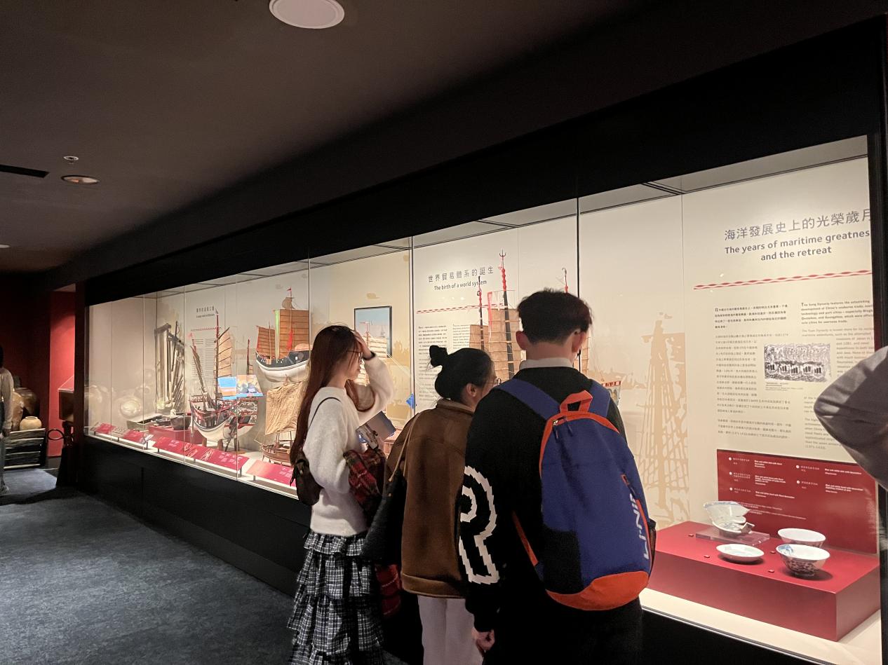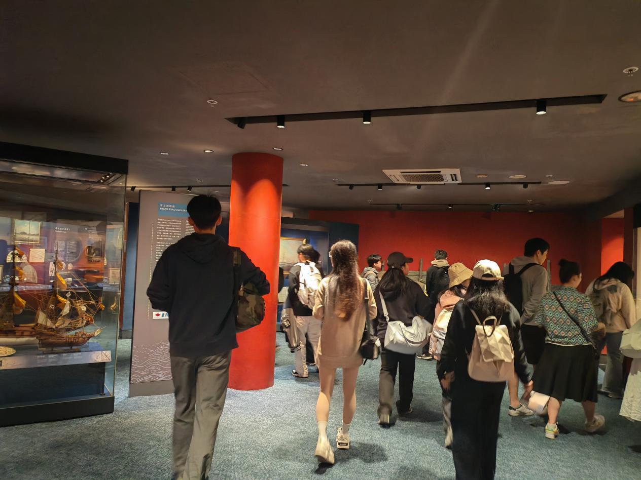12月8日,研学活动继续深入。学生们自行搭乘港铁前往坐落于海港旁的香港海事博物馆,这座博物馆共有三层,其中B、C两层为展览区,通过丰富的展览内容,如近现代航运的发展、古代航运历史等,学生们深入了解了香港作为国际港口和航运中心的悠久历史和重要地位。在参观过程中,学生们仔细聆听讲解,认真记录笔记,并积极提问,展现出浓厚的学习兴趣和探索精神。