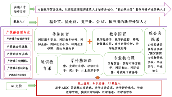 国际贸易数字化融合作为新文科建设的关键发展方向,其核心宗旨在于借助人工智能(AI)技术的深度应用,促进国际贸易领域的数字化转型。该融合模式着重于将数据分析、机器学习等先进AI技术整合入国际经济与贸易专业的课程体系,旨在培育学生在数字化贸易环境中具备竞争优势的能力。