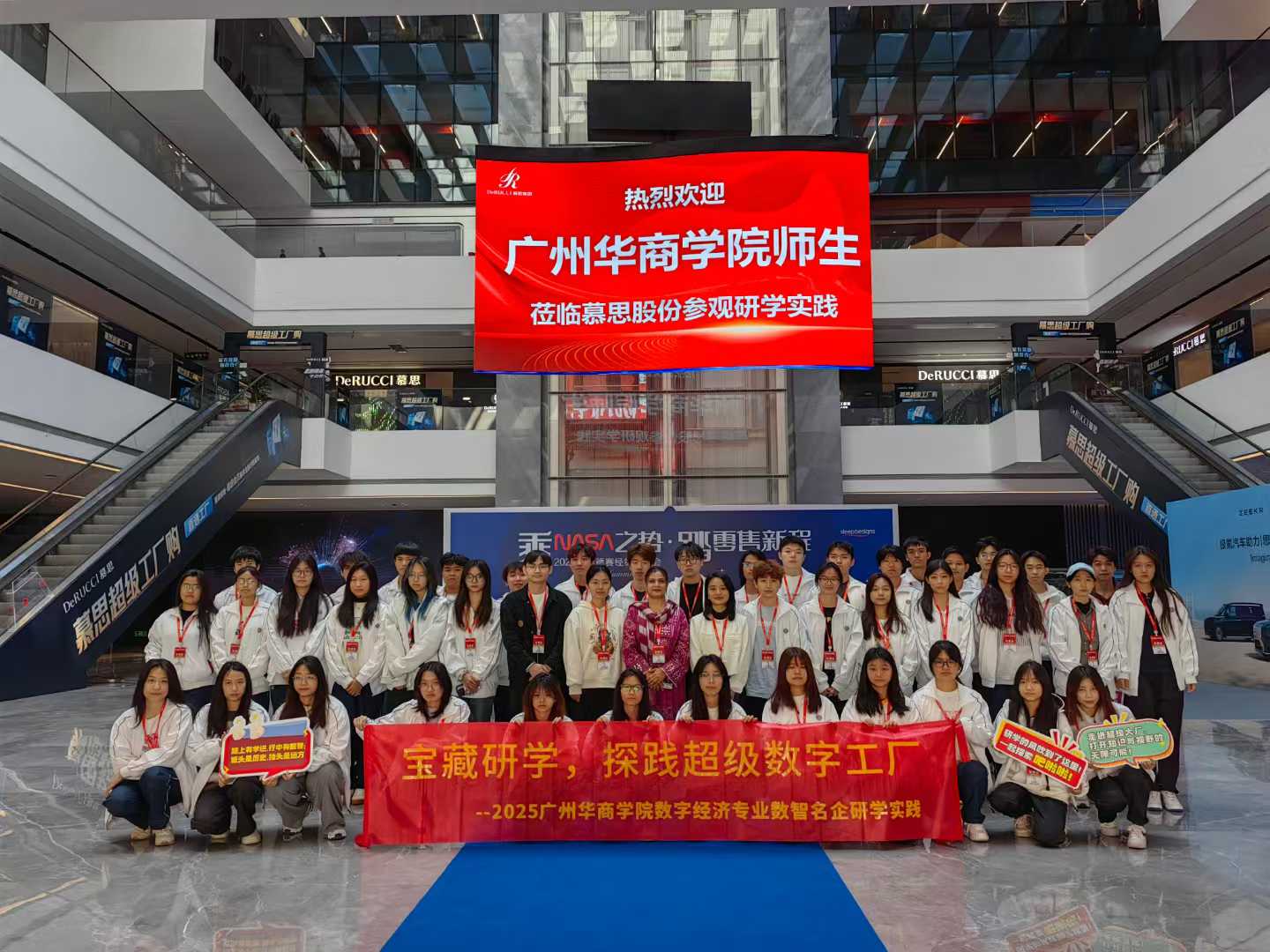 秉承"产教科创融合育人"的前瞻教育理念,立足数字经济产业变革前沿,构建"技术赋能教育-教育反哺产业"的双向循环生态,2025年3月19日,bv伟德国际1946组织数字经济专业学生,到东莞的数智名企--慕思健康睡眠股份有限公司,开展主题为“宝藏研学,探索超级数字工厂”的实践活动。参加本次研学实践活动的有数字经济系副主任彭珍、数字经济系专任教师Aneela 博士、董文晋老师、bv伟德国际1946辅导员曾庆威老师及数字经济专业大二全体学生。