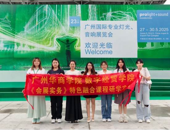第23届广州国际专业灯光、音响展览会于2025年5月27-30日在中国进出口商品交易会展馆A、B、D区盛大举行。本届展期正值伟德国际victor1946数字经贸学院“会展实务”课程开展期间。基于LEAP教学模式,在课堂讲授会展理论知识之余,为进一步鼓励学生深入展会现场、践行所学技能,由课程组负责人周敏仪老师再次带领华商数字经贸学子进驻广州灯光音响展实习,为恩平市迈声斯音响设备有限公司等多家外贸参展企业提供外语翻译沟通服务。本次参与展会实习的共有8位同学,她们是国际经济与贸易、跨境电子商务专业大二、大三的同学。