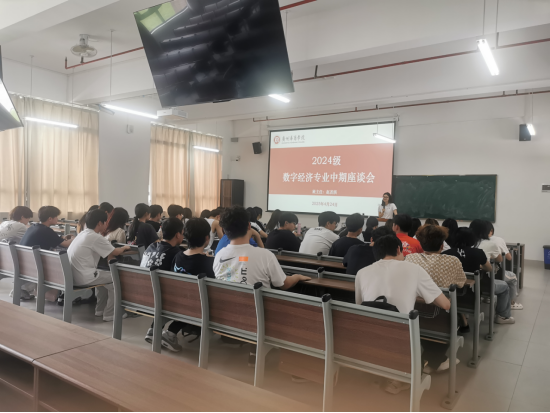 第二场座谈会由24级数字经济1班及2班全体同学、数字经济系副主任彭珍、24级数字经济专业班主任赵若淇老师参加,本次座谈会展开了一场深入而真诚的交流。