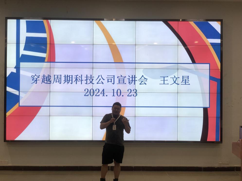 此次宣讲会上,穿越周期科技公司的招聘人员也来到现场进行宣传,负责人王文星详细介绍了企业的发展历程、行业发展现状以及企业用人需求等信息,并鼓励同学们要注重实践、踏实奋进。他认为,成功离不开“努力+运气”,学子们要用长远的目光看待职业规划,充分发挥经贸专业学生的优势,努力成为复合型人才,攒经验、学知识。