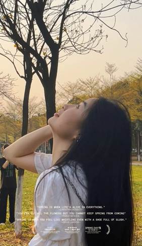 她变得乐观开朗、勤奋自律。喜欢与朋友们相处。她是宿舍长,在生活中,她积极督促友们不迟到、不早退,及时完成作业,同时提醒友们不可做违反校规校纪之事;同时,她也以身作则,并且获得了2021年“校文明安全纪律教育月先进个人”的奖项。